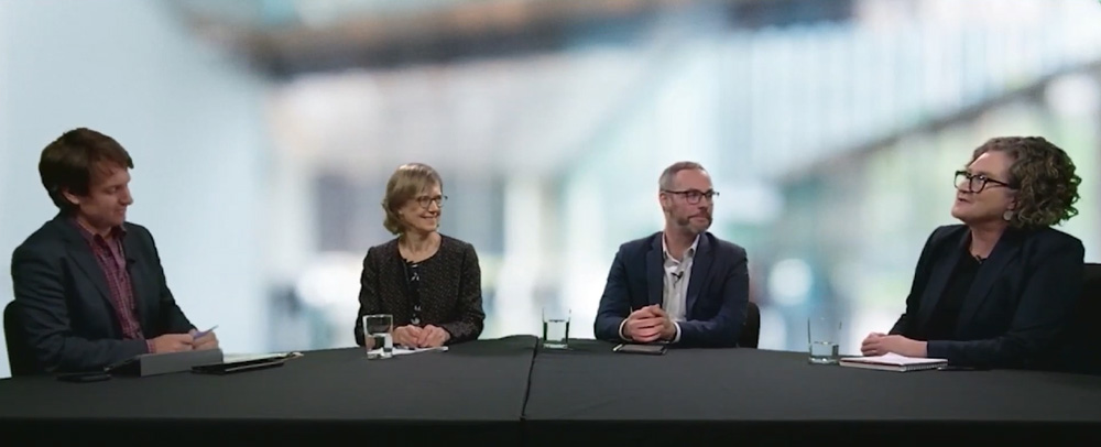 Craig Reucassel, host of ABC’s ‘The War on Waste’, Kate Wilson, Executive Director - Climate Change and Sustainability Division, NSW Department of Planning, Industry and Environment, Luke Menzel, CEO, Energy Efficiency Council and Anne Martinelli, Interim Executive Director, Australian Sustainable Built Environment Council, during the closing remarks.