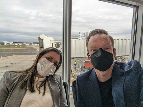 Ivana Brown, NABERS Sector Lead Accelerating Net Zero Buildings, and James Elks, NABERS Head of Product Development, connect in Adelaide airport.